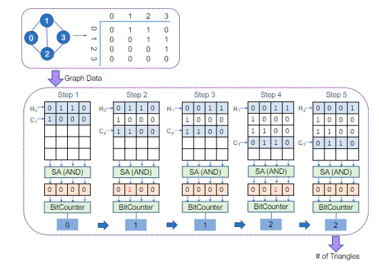 Triangle counting (TC) is a fundamental problem in graph analysis and has found numerous applications, which motivates many TC acceleration solutions in the traditional computing platforms like GPU and FPGA. However, these approaches suffer from the bandwidth bottleneck because TC calculation involves a large amount of data transfers. In this paper, we propose to overcome this challenge by designing a TC accelerator utilizing the emerging processing-in-MRAM (PIM) architecture. The true innovation behind our approach is a novel method to perform TC with bitwise logic operations (such as AND), instead of the traditional approaches such as matrix computations. This enables the efficient in-memory implementations of TC computation, which we demonstrate in this paper with computational Spin-Transfer Torque Magnetic RAM (STT-MRAM) arrays. Furthermore, we develop customized graph slicing and mapping techniques to speed up the computation and reduce the energy consumption. We use a device-to-architecture co-simulation framework to validate our proposed TC accelerator. The results show that our data mapping strategy could reduce 99.99% of the computation and 72% of the memory WRITE operations. Compared with the existing GPU or FPGA accelerators, our in-memory accelerator achieves speedups of 9× and 23.4×, respectively, and a 20.6× energy efficiency improvement over the FPGA accelerator.